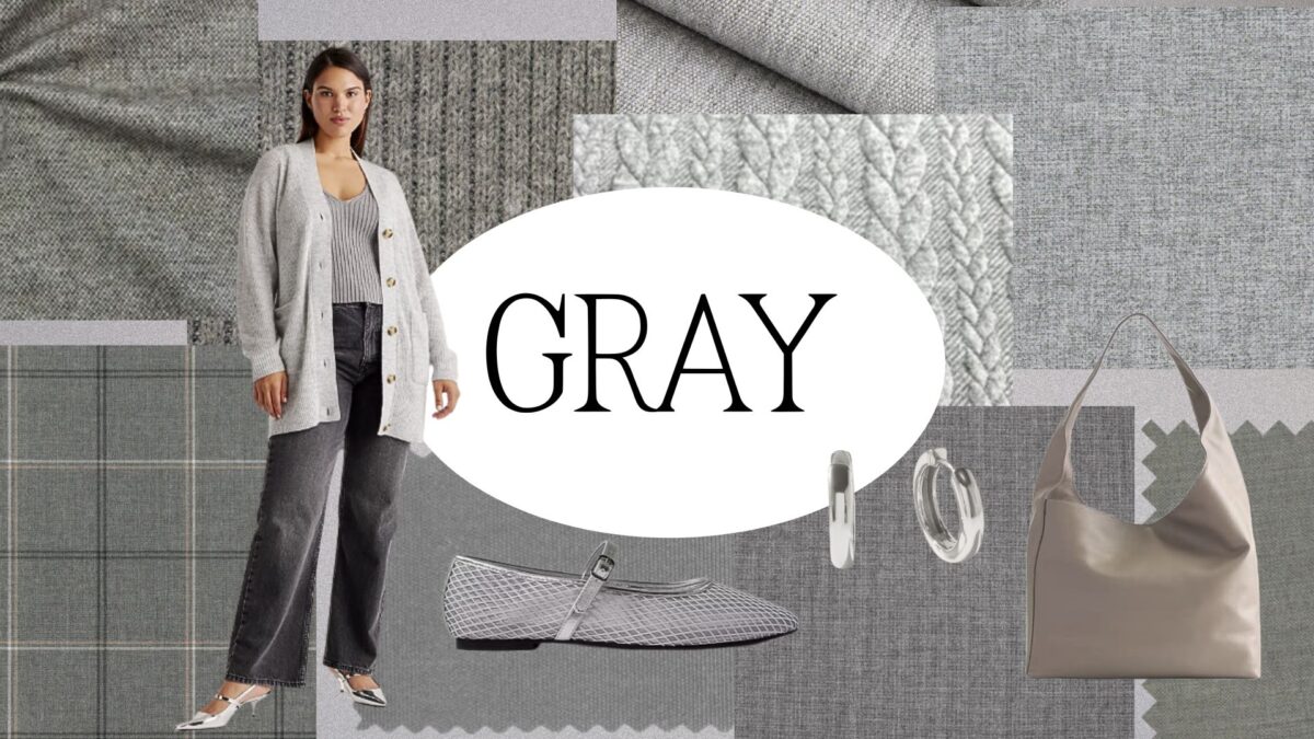 Gray, it’s a classic. Try layering up with different shades to keep it interesting and swap out your gold jewelry for silver. For accessories, try a metallic shoe or handbag.